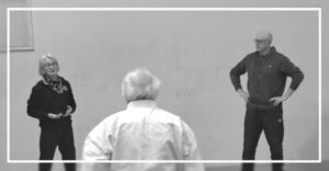 Christian insistait sur la posture, sur la verticalité, la maitrise de son centre en position fixe puis en mobilité. Le maintien du corps, le port de tête, le positionnement des hanches. Là aussi, au travers d’un déplacement simple (marche), cadencement de la respiration (Inspiration sur x pas, blocage sur x pas, puis expiration sur x pas, en faisant varié x).