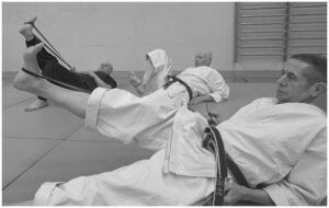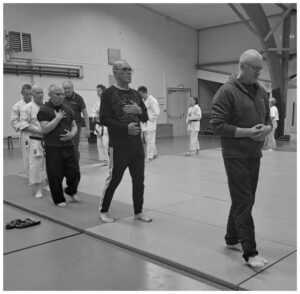 La venue de Christian COURTONNE (7ème DAN FFKDA SHOTOKAN) au cours de karaté « bien être » assuré par Anne NICOLAS, vendredi dernier, a permis de rassembler une vingtaine de pratiquants habitués ou non à cette séance.