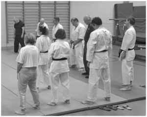 Anne développait la notion de relâchement et la manière d’y arriver. Le relâchement, c’est le mouvement. Associé à la respiration, on le perçoit mieux, on l’intègre mieux. Notre discipline martiale ne doit pas dissocier ces éléments fondamentaux, de la technique pure (kata, kihon, kumite). Il convient donc d’aborder ces thèmes le plut tôt possible et l’intégrer dans nos cours distinctifs.