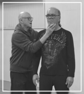 Christian insistait sur la posture, sur la verticalité, la maitrise de son centre en position fixe puis en mobilité. Le maintien du corps, le port de tête, le positionnement des hanches. Là aussi, au travers d’un déplacement simple (marche), cadencement de la respiration (Inspiration sur x pas, blocage sur x pas, puis expiration sur x pas, en faisant varié x).
